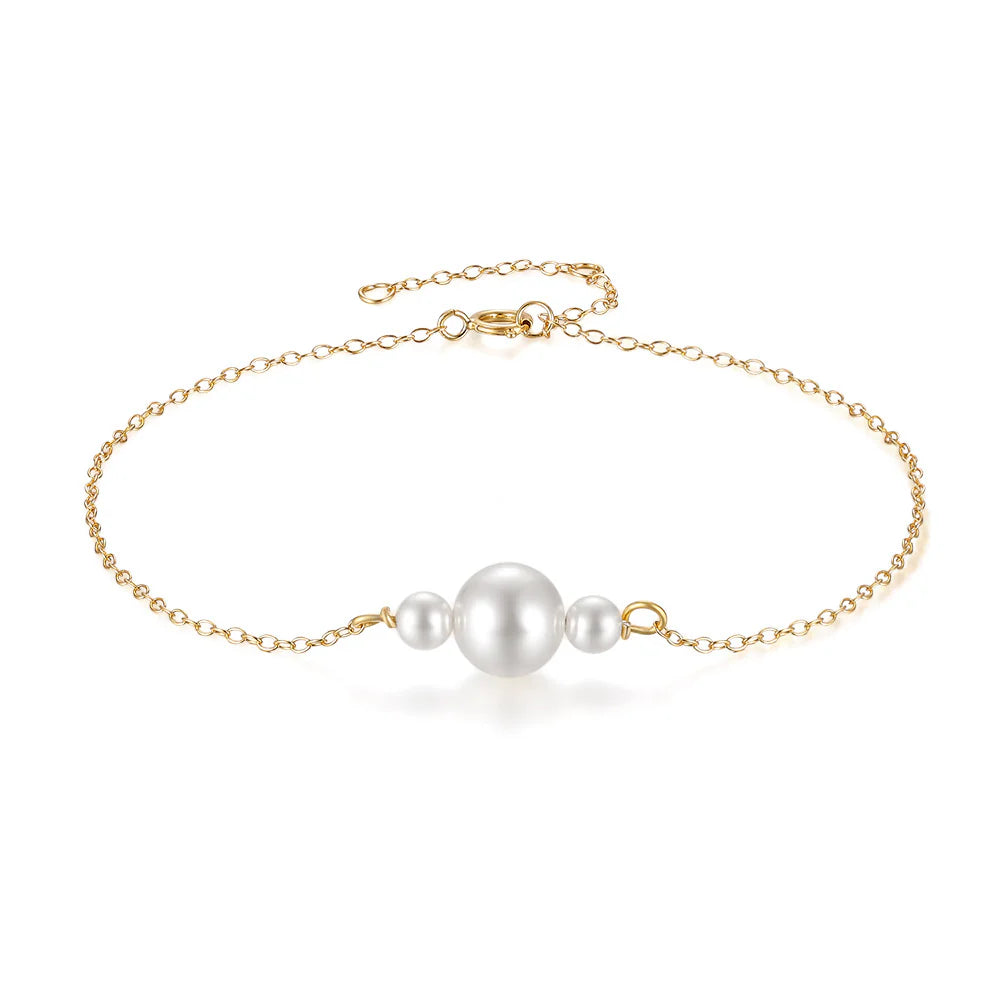 The 3 Pearl Bracelet offers a perfect balance of elegance and simplicity. Three luminous pearls are beautifully arranged on a sleek gold chain, adding a timeless touch to any outfit. Ideal for both special occasions and everyday wear, it brings effortless sophistication to your style.