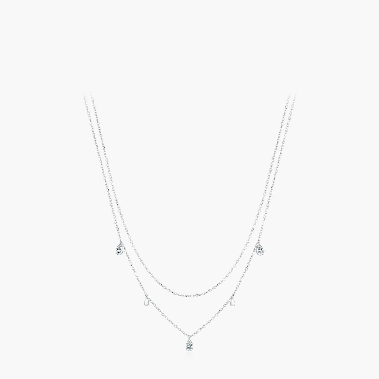 Add a touch of elegance with the Bi-Layered Water Drop Necklace, featuring delicate silver chains and shimmering water droplet charms. Perfect for elevating any look with a subtle, graceful charm.