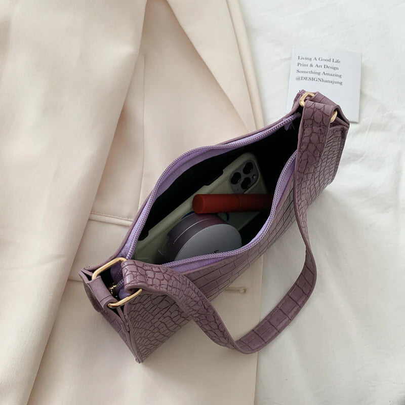 Elevate your style with the Croc Pattern Shoulder Bag, a chic essential that brings timeless elegance to any outfit. Designed for versatility, it's the perfect blend of luxury and practicality.